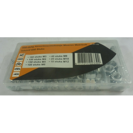 Moeren assortiment 650-delig Metrisch.