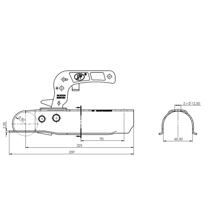 Kogelkoppeling Ø-60 mm. 750 kg.
